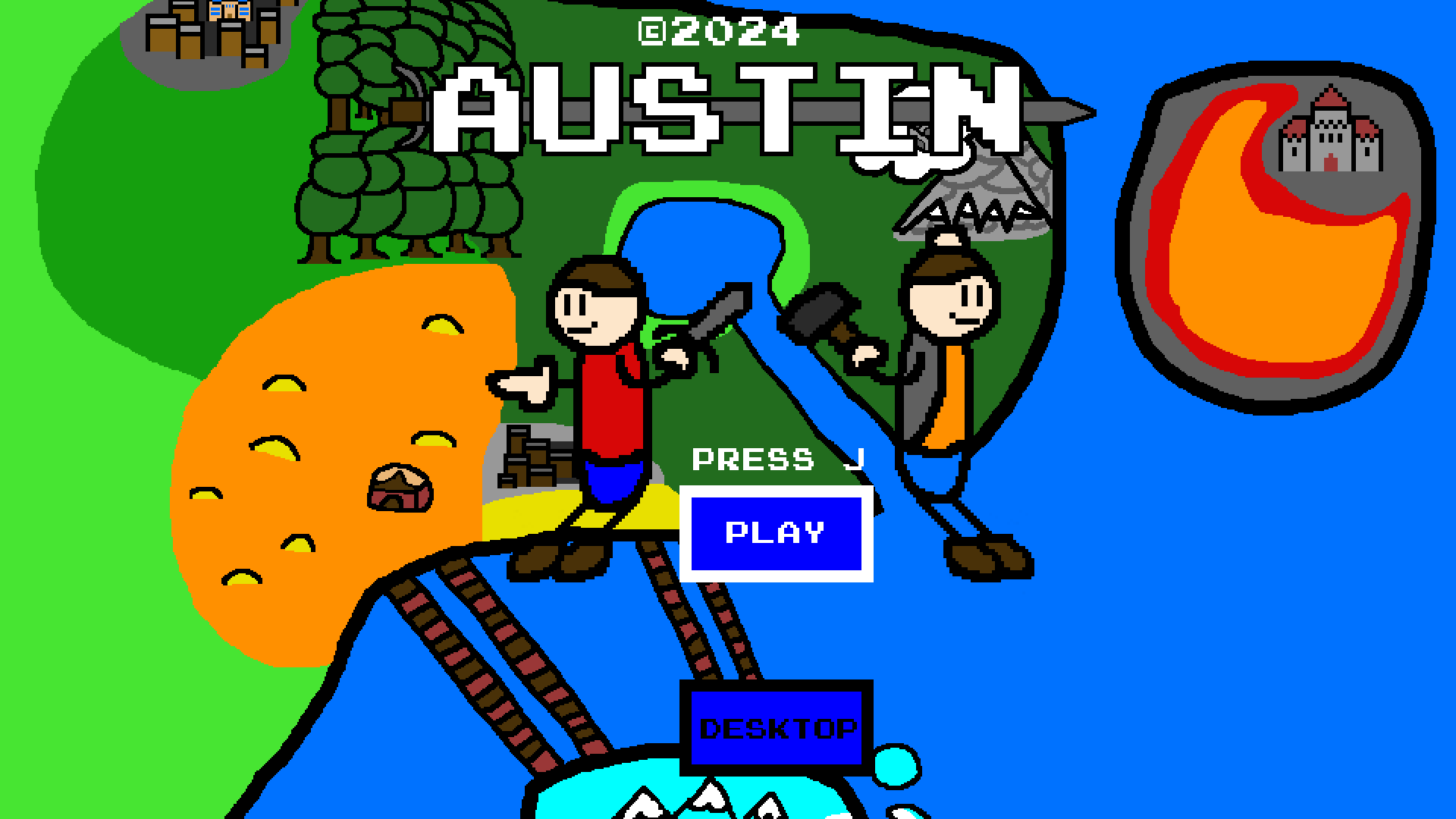 Austin is a 2D platfomer where you play as Austin or Owen as you go around Pip County in order to save your boss / friend (Kate) from Vulcan and his dragon army.